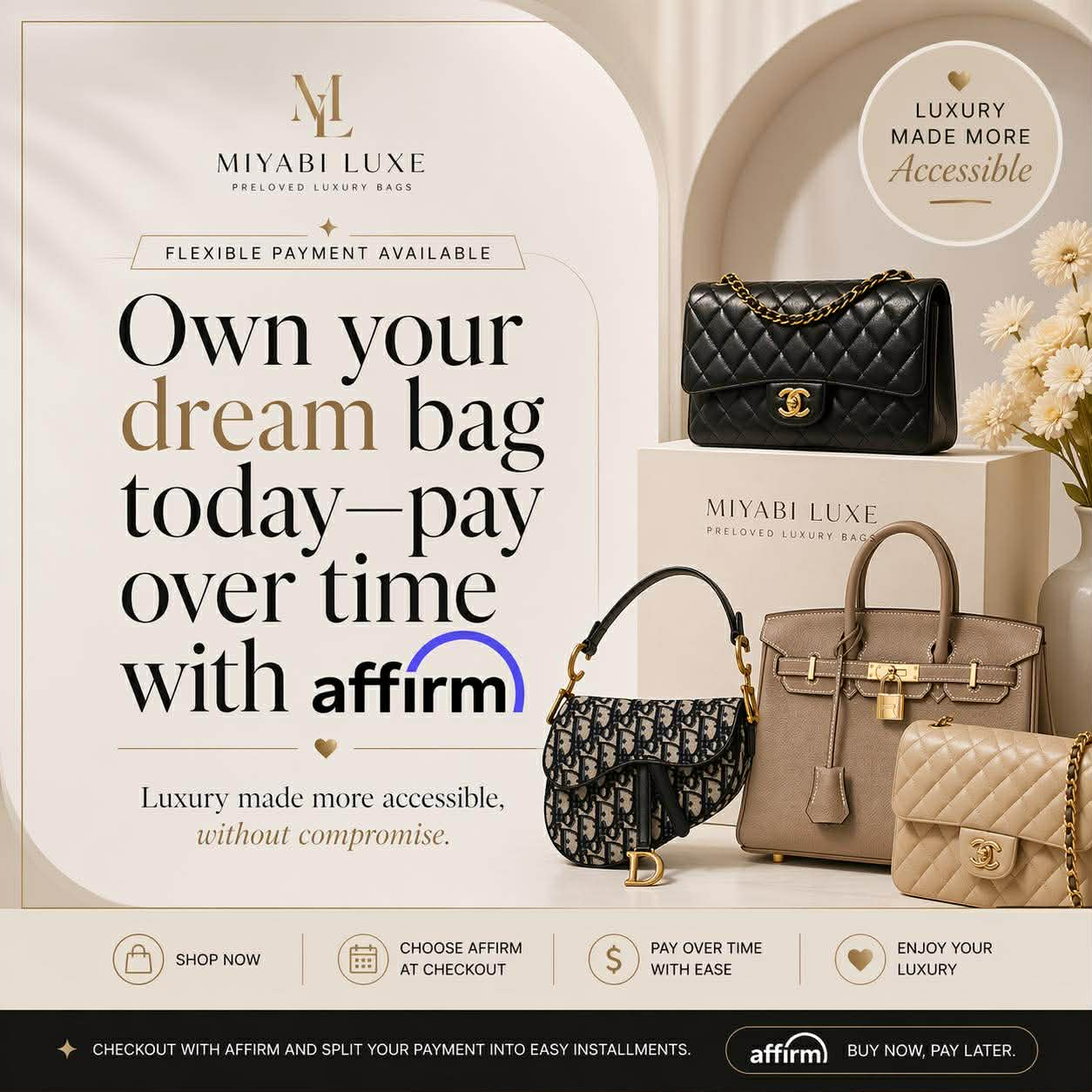 At the heart of our brand is a commitment to authenticity and excellence. Each bag is chosen not only for its aesthetic appeal but also for its durability and superior craftsmanship. We believe that a luxury bag is more than an accessory—it is a statement of confidence, individuality, and refined taste.